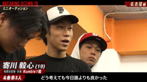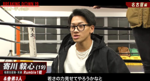 寄川毅心さんが一躍注目を集めたのは、朝倉未来さんのYouTubeチャンネルで公開されたBreaking Down19の事前オーディション動画(名古屋編)への出演がきっかけです。