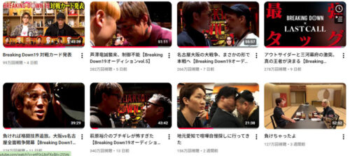 朝倉未来さんのYouTubeチャンネルに公開されているBreakingDown19の各オーディション動画の再生数を比較してみると、興味深い数字が見えてきます。