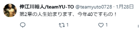 仲江川裕人さんは、2026年のうちに40歳となると語っております。