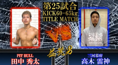 三河幕府所属の高木雷神さんを相手に60-65kgキックタイトルマッチで判定勝利を収め、益荒男チャンピオンのベルトを獲得しています。