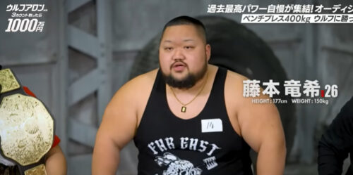 「ベンチプレス400kg男」の異名を持ち、過去にウルフアロン選手に勝利したこともある藤本竜希さんは今回の注目選手のひとりです。